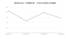 2021年4月,奥迪RS 5销量为56辆,同比增长36.59%,环比下降29.11%。1-4月份,奥迪RS 5销量为267辆,同比增长151.89%。在最近1年中,奥迪RS 5销量在2021年01月达到最高,销量为86辆。