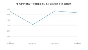 2021年4月,雷克萨斯CT销量为532辆,同比下降4.83%,环比下降6.17%。1-4月份,雷克萨斯CT销量为1968辆,同比增长48.08%。在最近1年中,雷克萨斯CT销量在2021年03月达到最高,销量为567辆。