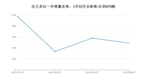 2021年4月,沃兰多销量为488辆,同比下降50.71%,环比下降15.72%。1-4月份,沃兰多销量为2372辆,同比下降31.09%。在最近1年中,沃兰多销量在2021年01月达到最高,销量为970辆。