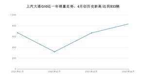 2021年4月,上汽大通G10销量为833辆,同比增长18.16%,环比增长25.08%。1-4月份,上汽大通G10销量为2486辆,同比增长26.06%。在最近1年中,上汽大通G10销量在2021年04月达到最高,销量为833辆。