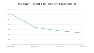 2021年4月,昂科拉GX销量为696辆,同比下降31.09%,环比下降16.25%。1-4月份,昂科拉GX销量为4394辆,同比增长7.01%。在最近1年中,昂科拉GX销量在2021年01月达到最高,销量为1831辆。