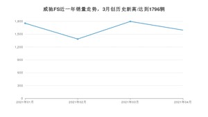 2021年4月,威驰FS销量为1594辆,同比下降26.37%,环比下降11.25%。1-4月份,威驰FS销量为6530辆,同比增长23.98%。在最近1年中,威驰FS销量在2021年03月达到最高,销量为1796辆。