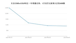 2021年4月,长安CS85 COUPE销量为893辆,同比下降8.13%,环比下降3.56%。1-4月份,长安CS85 COUPE销量为5480辆,同比增长31.95%。在最近1年中,长安CS85 COUPE销量在2021年01月达到最高,销量为2488辆。