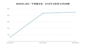 2021年4月,MARVEL R销量为449辆,环比增长3.46%。1-4月份,MARVEL R销量为947辆,在最近1年中,MARVEL R销量在2021年04月达到最高,销量为449辆。
