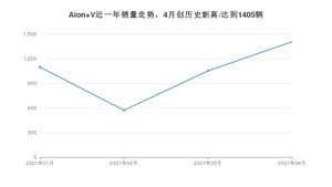 2021年4月,Aion V销量为1405辆,环比增长33.56%。1-4月份,Aion V销量为4125辆,在最近1年中,Aion V销量在2021年04月达到最高,销量为1405辆。