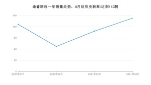 2021年4月,途睿欧销量为143辆,同比增长62.5%,环比增长32.41%。1-4月份,途睿欧销量为444辆,同比增长103.67%。在最近1年中,途睿欧销量在2021年04月达到最高,销量为143辆。