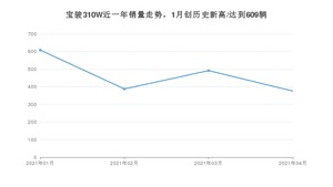 2021年4月,宝骏310W销量为376辆,同比下降72.85%,环比下降23.58%。1-4月份,宝骏310W销量为1865辆,同比下降63.53%。在最近1年中,宝骏310W销量在2021年01月达到最高,销量为609辆。