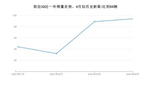 2021年4月,欧拉iQ销量为94辆,同比增长9.3%,环比增长5.62%。1-4月份,欧拉iQ销量为259辆,同比增长11.16%。在最近1年中,欧拉iQ销量在2021年04月达到最高,销量为94辆。