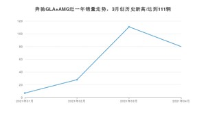 2021年4月,奔驰GLA AMG销量为80辆,环比下降27.93%。1-4月份,奔驰GLA AMG销量为226辆,同比增长7%。在最近1年中,奔驰GLA AMG销量在2021年03月达到最高,销量为111辆。