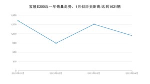 2021年4月,宝骏E200销量为1139辆,同比增长3.17%,环比下降24.52%。1-4月份,宝骏E200销量为5162辆,同比增长46.86%。在最近1年中,宝骏E200销量在2021年01月达到最高,销量为1621辆。
