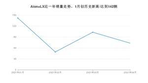 2021年4月,Aion LX销量为73辆,同比下降82.9%,环比下降29.13%。1-4月份,Aion LX销量为367辆,同比下降62.89%。在最近1年中,Aion LX销量在2021年01月达到最高,销量为142辆。