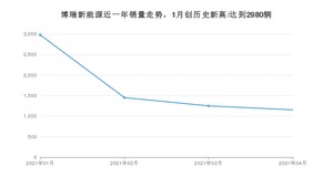 2021年4月,博瑞新能源销量为1154辆,同比下降13.88%,环比下降7.68%。1-4月份,博瑞新能源销量为6836辆,同比增长62.11%。在最近1年中,博瑞新能源销量在2021年01月达到最高,销量为2980辆。