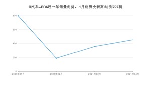 2021年4月,R汽车品牌总体销量达到901辆,其中R汽车 ER6销量达到452辆,占品牌总销量的50.17%。