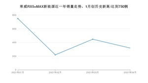 2021年4月,荣威RX5 MAX新能源销量为318辆,同比增长59%,环比下降28.86%。1-4月份,荣威RX5 MAX新能源销量为1734辆,同比增长208.54%。在最近1年中,荣威RX5 MAX新能源销量在2021年01月达到最高,销量为750辆。