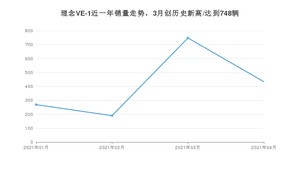 2021年4月,理念VE-1销量为434辆,同比增长65.02%,环比下降41.98%。1-4月份,理念VE-1销量为1641辆,同比增长263.86%。在最近1年中,理念VE-1销量在2021年03月达到最高,销量为748辆。