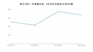 2021年4月,海马7X销量为669辆,环比下降10.92%。1-4月份,海马7X销量为2361辆,在最近1年中,海马7X销量在2021年03月达到最高,销量为751辆。