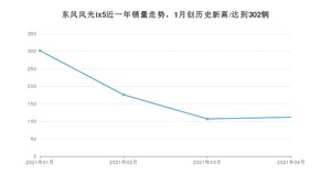2021年4月,东风风光ix5销量为112辆,同比下降65.85%,环比增长4.67%。1-4月份,东风风光ix5销量为697辆,同比下降66.28%。在最近1年中,东风风光ix5销量在2021年01月达到最高,销量为302辆。