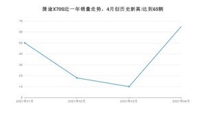 2021年4月,捷途品牌总体销量达到7404辆,其中捷途X70S销量达到65辆,占品牌总销量的0.88%。