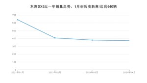 2021年4月,东南DX5销量为373辆,同比下降18.2%,环比下降1.84%。1-4月份,东南DX5销量为1801辆,同比下降19.63%。在最近1年中,东南DX5销量在2021年01月达到最高,销量为640辆。