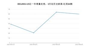 2021年4月,BEIJING-U5销量为60辆,同比下降65.12%,环比下降6.25%。1-4月份,BEIJING-U5销量为184辆,同比下降65.02%。在最近1年中,BEIJING-U5销量在2021年03月达到最高,销量为64辆。