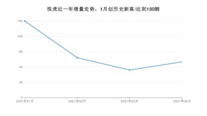 2021年4月,悦虎销量为70辆,同比增长400%,环比增长29.63%。1-4月份,悦虎销量为352辆,同比增长1%。在最近1年中,悦虎销量在2021年01月达到最高,销量为150辆。