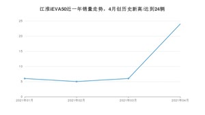 2021年4月,江淮iEVA50销量为24辆,同比下降77.14%,环比增长300%。1-4月份,江淮iEVA50销量为41辆,同比下降65.25%。在最近1年中,江淮iEVA50销量在2021年04月达到最高,销量为24辆。