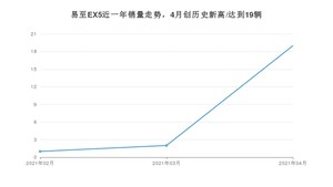 2021年4月,易至EX5销量为19辆,环比增长850%。1-4月份,易至EX5销量为22辆,在最近1年中,易至EX5销量在2021年04月达到最高,销量为19辆。