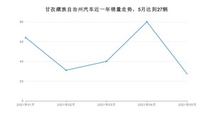 2021年5月,甘孜藏族自治州汽车总销量为27辆,同比下降74.29%,环比下降66.25%。1-5月份,甘孜藏族自治州总销量为242辆,同比下降27.76%。在最近1年中,甘孜藏族自治州销量在2021年04月达到最高,销量为80辆。