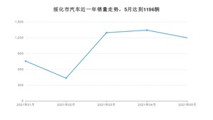 2021年5月,绥化市汽车总销量为1196辆,同比下降0.25%,环比下降10.88%。1-5月份,绥化市总销量为5019辆,同比增长18.96%。在最近1年中,绥化市销量在2021年04月达到最高,销量为1342辆。