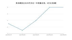 2021年5月,果洛藏族自治州汽车总销量为8辆,同比增长60%,环比持平。1-5月份,果洛藏族自治州总销量为24辆,同比增长50%。在最近1年中,果洛藏族自治州销量在2021年05月达到最高,销量为8辆。