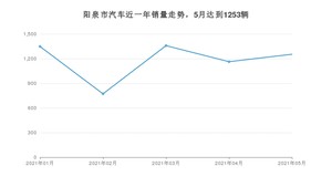 2021年5月,阳泉市汽车总销量为1253辆,同比下降8.27%,环比增长7.74%。1-5月份,阳泉市总销量为5894辆,同比增长22.69%。在最近1年中,阳泉市销量在2021年03月达到最高,销量为1358辆。