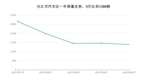 2021年5月,内江市汽车总销量为1386辆,同比增长5.88%,环比下降5%。1-5月份,内江市总销量为8929辆,同比增长31.97%。在最近1年中,内江市销量在2021年01月达到最高,销量为2652辆。