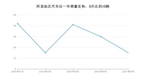2021年5月,阿里地区汽车总销量为15辆,同比增长25%,环比下降50%。1-5月份,阿里地区总销量为143辆,同比增长169.81%。在最近1年中,阿里地区销量在2021年01月达到最高,销量为42辆。