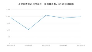 2021年5月,昌吉回族自治州汽车总销量为1970辆,同比增长8.24%,环比增长5.4%。1-5月份,昌吉回族自治州总销量为8843辆,同比增长49.45%。在最近1年中,昌吉回族自治州销量在2021年03月达到最高,销量为2083辆。