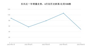 在国内市场上,东风在2021年5月的销量为48辆,同比增长54.84%,环比下降54.72%。1-5月份,东风累计销量为378辆,较去年同期下降37.73%。