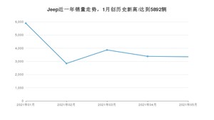 在国内市场上,Jeep在2021年5月的销量为3349辆,同比下降19.11%,环比下降0.98%。1-5月份,Jeep累计销量为19330辆,较去年同期增长2.62%。