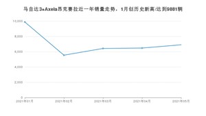 2021年5月,马自达3 Axela昂克赛拉销量为6902辆,同比下降13.91%,环比增长6.61%。1-5月份,马自达3 Axela昂克赛拉销量为35219辆,同比增长10.06%。在最近1年中,马自达3 Axela昂克赛拉销量在2021年01月达到最高,销量为9881辆。