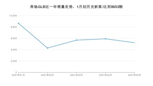 2021年5月,奔驰GLB销量为5226辆,同比下降2.48%,环比下降11.62%。1-5月份,奔驰GLB销量为29755辆,同比增长105.31%。在最近1年中,奔驰GLB销量在2021年01月达到最高,销量为8653辆。