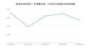 2021年5月,凯迪拉克XT6销量为2690辆,同比增长49.61%,环比下降22.77%。1-5月份,凯迪拉克XT6销量为14818辆,同比增长147.54%。在最近1年中,凯迪拉克XT6销量在2021年01月达到最高,销量为3533辆。