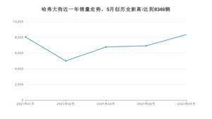 2021年5月,哈弗大狗销量为8349辆,环比增长20.67%。1-5月份,哈弗大狗销量为35056辆,在最近1年中,哈弗大狗销量在2021年05月达到最高,销量为8349辆。