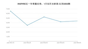 2021年5月,INSPIRE销量为4386辆,同比增长32.71%,环比增长3.93%。1-5月份,INSPIRE销量为23818辆,同比增长86.98%。在最近1年中,INSPIRE销量在2021年01月达到最高,销量为6502辆。