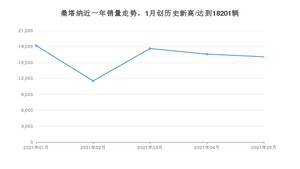 2021年5月,桑塔纳销量为16092辆,同比增长24.4%,环比下降2.97%。1-5月份,桑塔纳销量为80059辆,同比增长41.5%。在最近1年中,桑塔纳销量在2021年01月达到最高,销量为18201辆。