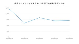 2021年5月,揽胜运动版销量为855辆,同比增长8.09%,环比增长2.27%。1-5月份,揽胜运动版销量为4845辆,同比增长46.24%。在最近1年中,揽胜运动版销量在2021年01月达到最高,销量为1436辆。