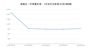 2021年5月,星越销量为941辆,同比下降66.32%,环比增长6.45%。1-5月份,星越销量为5546辆,同比下降48.59%。在最近1年中,星越销量在2021年01月达到最高,销量为1899辆。