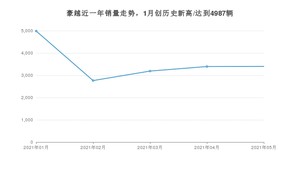 2021年5月,豪越销量为3399辆,环比增长0.18%。1-5月份,豪越销量为17731辆,在最近1年中,豪越销量在2021年01月达到最高,销量为4987辆。