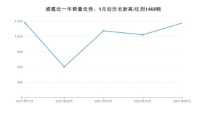 2021年5月,威霆销量为1460辆,同比增长52.4%,环比增长18.6%。1-5月份,威霆销量为6070辆,同比增长77.02%。在最近1年中,威霆销量在2021年01月达到最高,销量为1468辆。