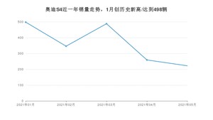 2021年5月,奥迪S4销量为222辆,同比增长865.22%,环比下降14.29%。1-5月份,奥迪S4销量为1813辆,同比增长834.54%。在最近1年中,奥迪S4销量在2021年01月达到最高,销量为498辆。