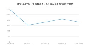2021年5月,宝马品牌总体销量达到75902辆,其中宝马6系GT销量达到1090辆,占品牌总销量的1.44%。