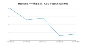 2021年5月,Model S销量为4辆,同比增长100%,环比增长33.33%。1-5月份,Model S销量为54辆,同比下降66.46%。在最近1年中,Model S销量在2021年01月达到最高,销量为20辆。