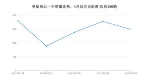 2021年5月,领航员销量为297辆,同比增长15.12%,环比下降16.57%。1-5月份,领航员销量为1468辆,同比增长36.94%。在最近1年中,领航员销量在2021年01月达到最高,销量为360辆。